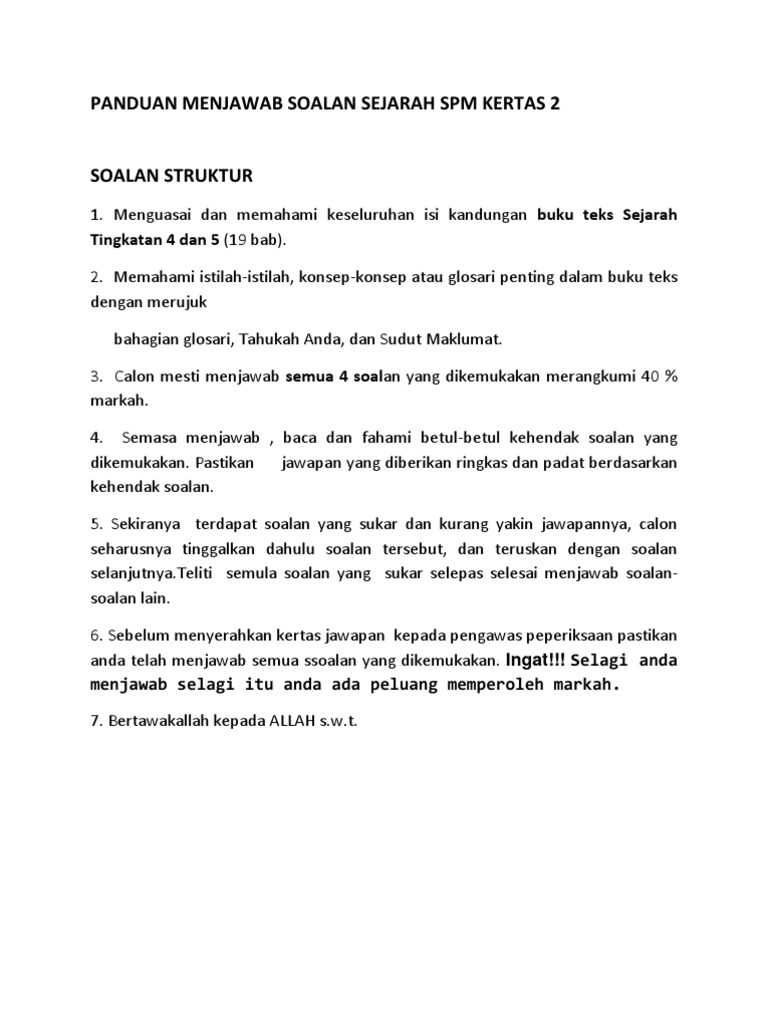 Contoh Soalan Sejarah Kertas 2 Tingkatan 5 Bab 7 Written By Alden Saturday, March 26, 2022 Add Comment Edit Sejarah Kertas 3 Contoh Jawapan Tingkatan 4 5 Spm 2022 Fokus Ramalan Kertas Soalan Sejarah Spm Tingkatan 5 Tahun 2020 Oleh Cikgu Roslee Yasin Panduan Menjawab Soalan Sejarah Spm Kertas 2 Pdf Soalan Objektif Sejarah Kssm Tingkatan 5 Share this post